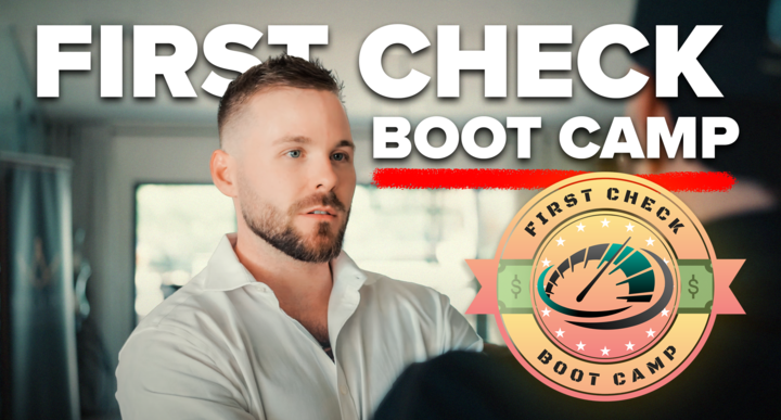 First Check Boot Camp is an 8-week, no-fluff system designed to help individuals earn $20K or more a month in real estate — without quitting their job, getting a license, or risking their savings. The program helps those who are tired of being stuck to learn how to earn $20K–$50K a month.